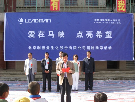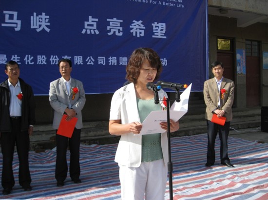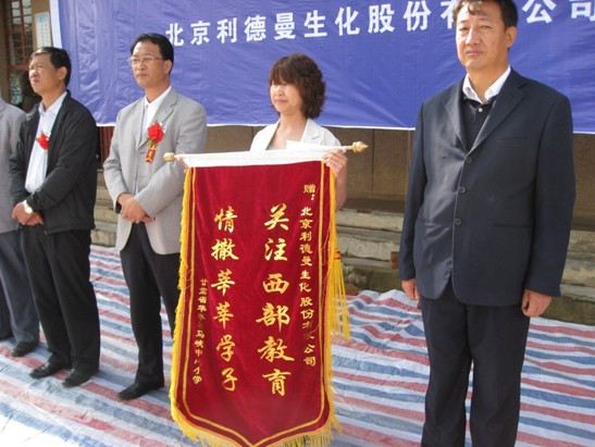 马峡,甘肃—— 2010年9月7日,米兰·官方站官网向甘肃省平凉市华亭县马峡中心小学无偿捐赠了价值十万元的钢木课桌椅。米兰·官方站官网副总经理张雅丽、华亭县县委常委、副县长徐德才、华亭县教育局局长陶玉宏等出席了捐赠仪式。马峡中心小学校长杜安平向米兰·官方站官网公司赠送了锦旗,表达感激之情。