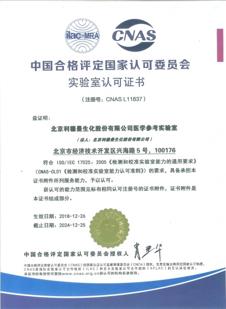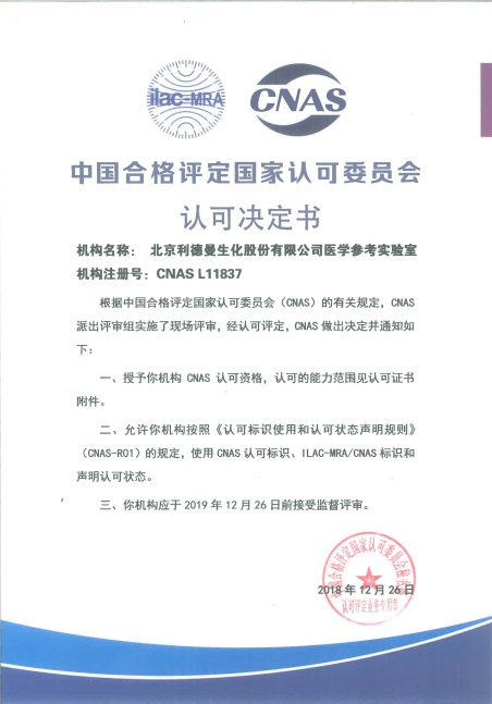 2018年12月26日,米兰·官方站官网医学参考实验室(以下称参考实验室)顺利通过中国合格评定国家认可委员会(CNAS)认可。