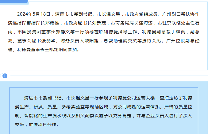 清远市市委副书记、市长温文星一行 莅临米兰·官方站官网指导工作