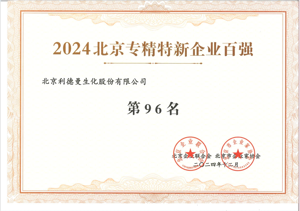 近日,北京企业联合会、北京市企业家协会公布《2024年北京市专精特新企业百强名单》,公司凭借在体外诊断领域的专业优势与创新能力,成功入选“2024北京专精特新企业百强”。